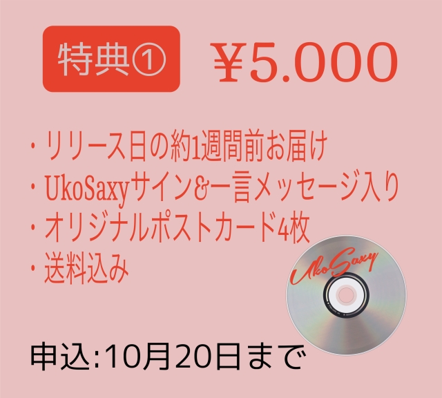 アルバム「Life to U Ⅱ」より5曲、UkoSaxy直筆楽譜のセット。オリジナルカラオケ、バンド用コード譜付き。