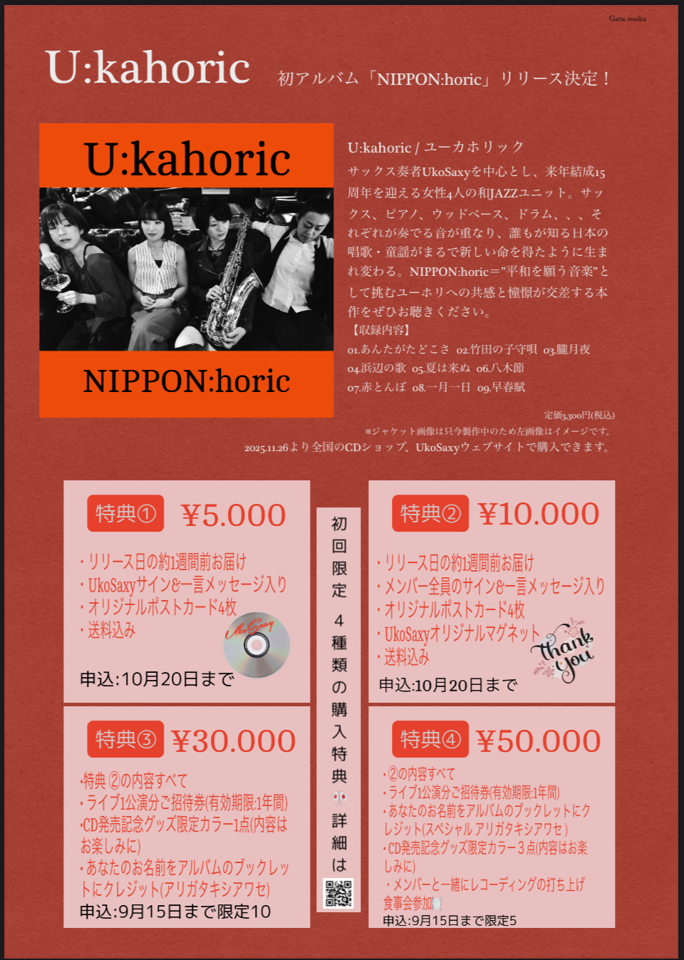 • あなたのお名前をアルバムのブックレットにクレジット(アリガタキシアワセ)